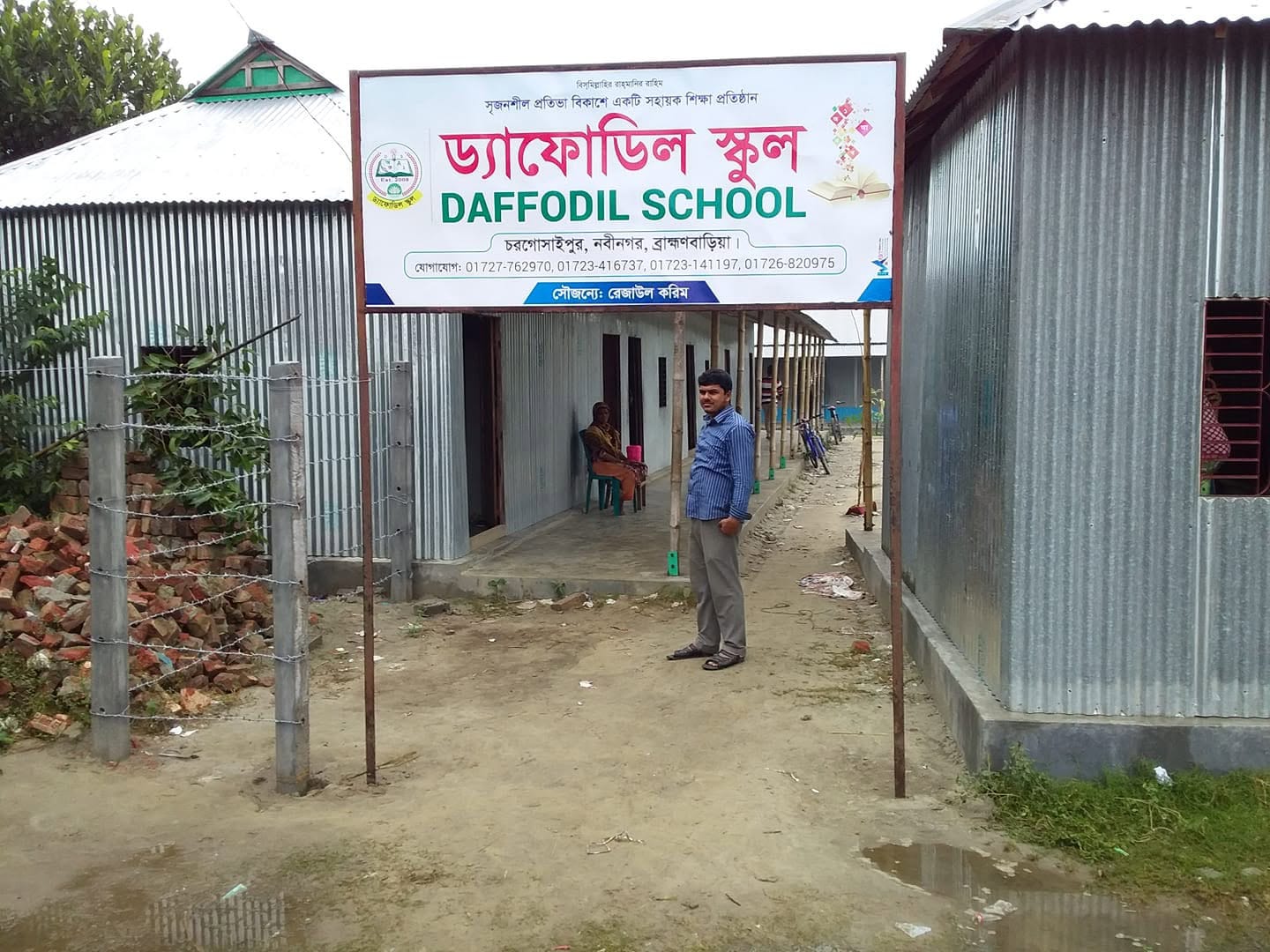 বিদ্যালয় সমাজের প্রতিচ্ছবি। মানব শিশুর সুপ্ত প্রতিভা বিকাশে অফুরন্ত সম্ভাবনার জাগরণ অনাবিল শস্য ভান্ডার, মধুময় তিতাস পারে গড়ে ওঠে ড্যাফোডিল কিন্ডারগার্টেন। অত্র প্রতিষ্ঠানটি অভীষ্ট লক্ষ্যে পৌঁছাতে মৌলিক চাহিদা সম্পন্ন গতিশীল, তথ্যপ্রযুক্তি, মানসম্মত যুগোপযোগী অত্যাধুনিক ও মানানসই শিক্ষা প্রতিষ্ঠান নিতান্তই প্রয়োজন। পিছিয়ে পড়া জনবহুল এলাকায় শিক্ষা প্রতিষ্ঠান অপ্রতুল। দুর্গম এলাকায় যোগাযোগ অবকাঠামো, মননশীলতার ও দায়িত্বশীল ব্যক্তিবর্গের অনুপস্থিতির কারণে মানসম্মত শিক্ষা প্রতিষ্ঠান গড়ে উঠে নাই। শিক্ষা জাতির মেরুদন্ড ও আলোকবর্তিক। জাতি ও সমাজকে গতিশীল ও অগ্রগামী করতে মানসম্মত শিক্ষার কোন বিকল্প নেই সেই চাহিদা পূরণ করতে দেশ ও সমাজের শিক্ষার কল্যাণে প্রতিষ্ঠা লাভ করে ড্যাফোডিল কিন্ডারগার্টেন ২০০৮ খ্রিস্টাব্দে। প্রতিষ্ঠার স্থান হিসেবে জায়গা নিতে অগ্রণী ভূমিকা পালন করেন বাংলাদেশ বেতারের কর্মচারী, রাধানগর গ্রামের চৌধুরী পাড়ার মরহুম মুরাদ আলম তার বাড়ির পশ্চিমে আঙিনায় পতিত অংশে দুটি টিনশেড ঘর ও প্রয়োজনীয় আসবাবপত্র ও শিক্ষা সরঞ্জাম নিয়ে যাত্রা শুরু হয়। এলাকার অভিভাবকমহল, সাধারণ মানুষের কৌতহল ও আগ্রহ নিয়ে সহযোগিতার গণজাগরণ হয়। আশানুরূপ শিক্ষার্থী ভর্তি হয় এবং শিক্ষা কার্যক্রম পুরোদমে পরিচালিত হয়। এবং আর পিছনে তাকাতে হয়নি। এমনকি উত্তরোত্তর শ্রেণি বর্ধিতকরণ অবকাঠামো প্রসারণ, শিক্ষক সংখ্যা বৃদ্ধি করুন এবং জায়গা সংকুলান না হওয়াই বিদ্যালয়ে স্থানান্তর করে রাধানগর হতে চরগোসাইপুর মঠের নিকট মরহুম বিল্লাল মিয়া (বিল্লাল ডাক্তার)'র পতিত বাড়িতে স্থানান্তরিত হয়। বিদ্যালয়ের অগ্রগতিতে সন্তোষ প্রকাশ করেই নিজের জায়গা দিয়ে সার্বিক সহযোগিতা করেন।.....
